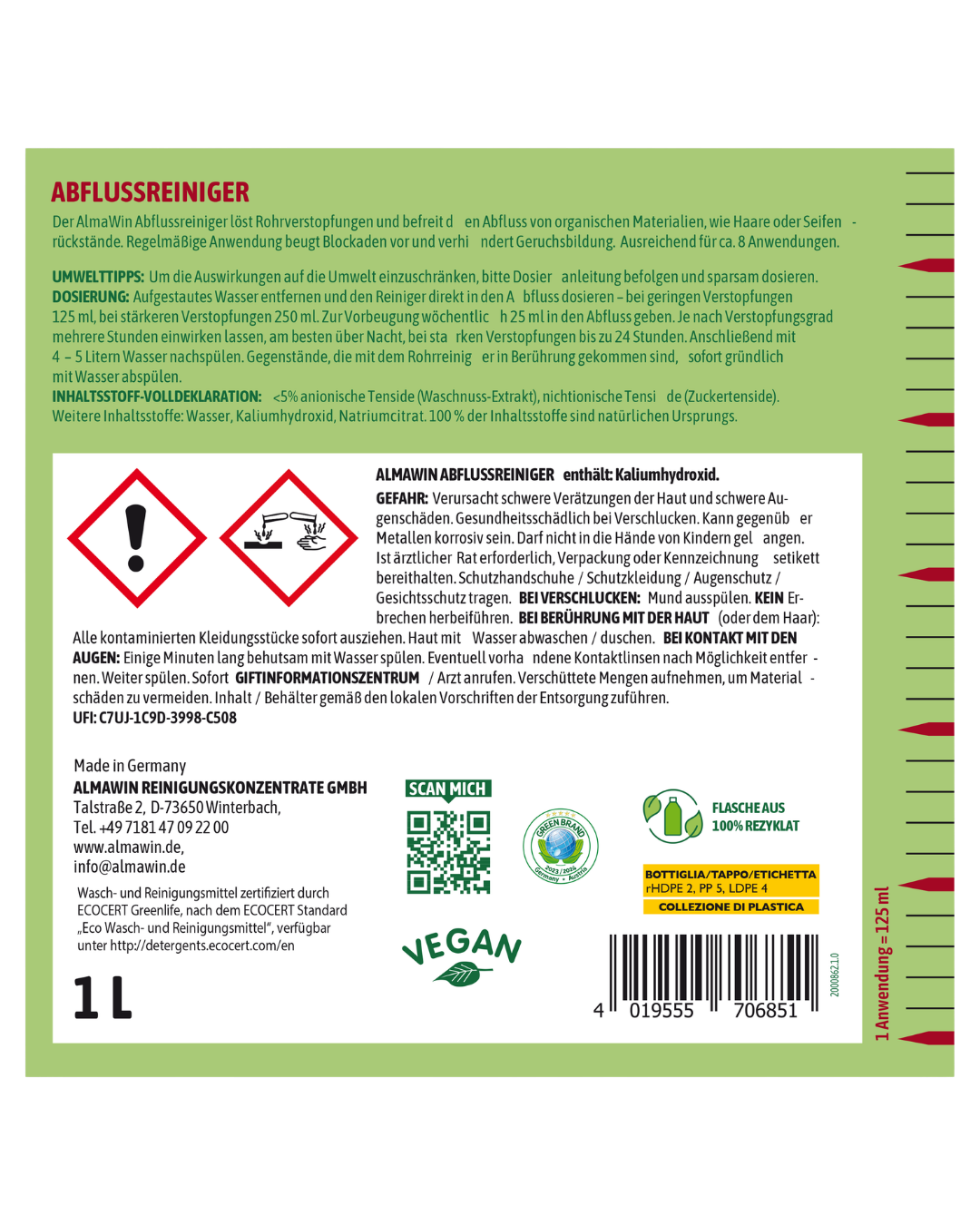 AlmaWin Abflussreiniger, 1l Produktdetaljer