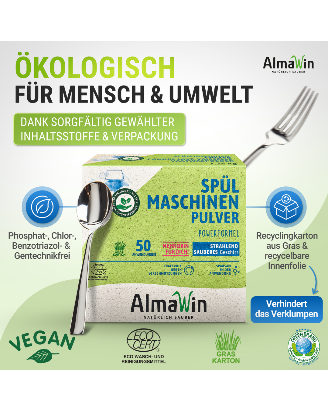 Warum wir bei greenist das AlmaWin Spülmaschinenpulver empfehlen: