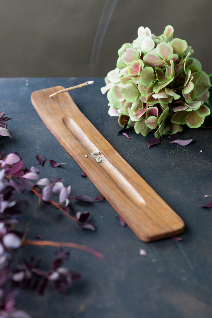 Räucherstäbchenhalter auf einen glatten und flachen Untergrund stellen. Räucherstäbchen in das dafür vorgesehene Loch stecken.