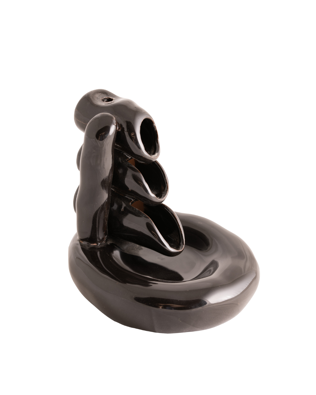 - Eleganter Backflow-Halter "Wasserfall" aus schwarz lasierter Keramik (H10×L11×B10 cm). Schafft einen beruhigenden, meditativen Duftfluss für Rückfluss-Räucherkegel.