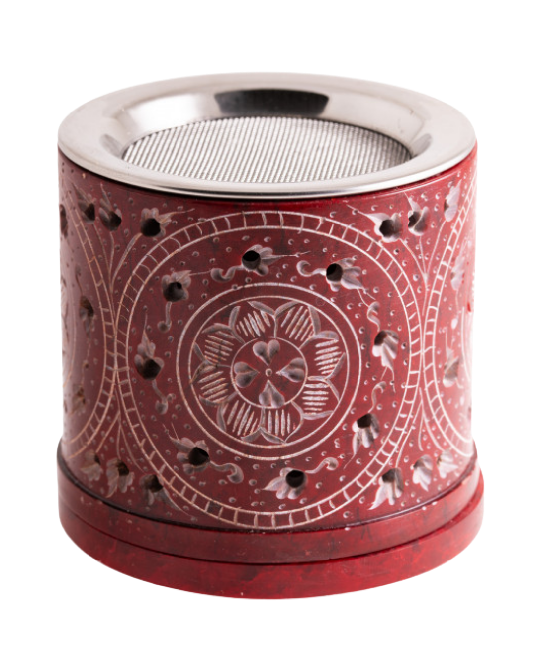 • Siebgefäß "Gita" aus Speckstein - handgeschnitzt im alt-orientalischen indischen Stil. Dekoratives Accessoire (H 8 cm, Ø 8,5 cm) mit Filzgleitern zum Möbelschutz.