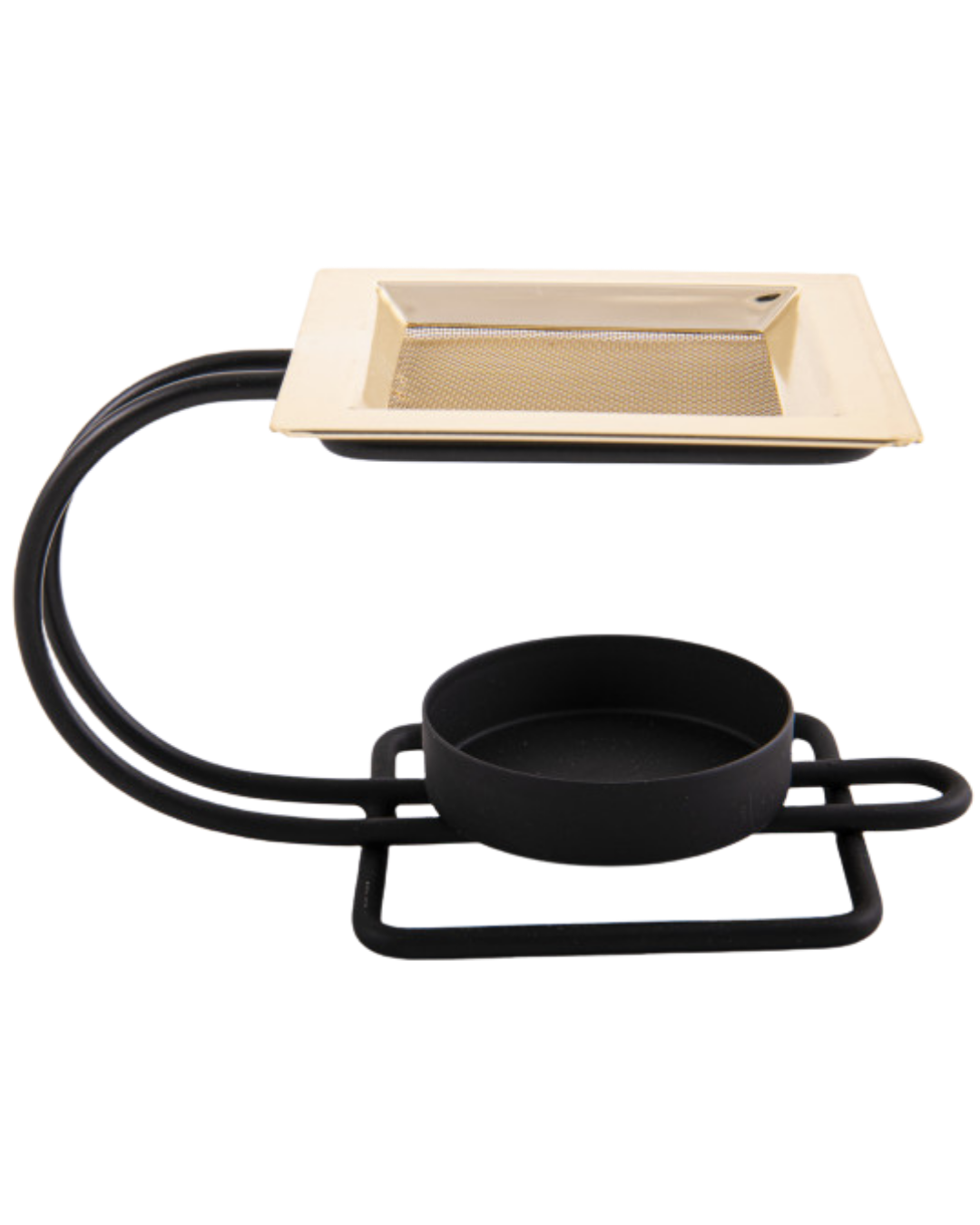 - Siebgefäß Kasir in Schwarzgold: modernes Design mit pulverbeschichtetem Eisen und goldenem Netz. Kompakt (H 8 cm, L 13,5 cm), funktional und preiswert - ideal für Alltag und Geschenk.