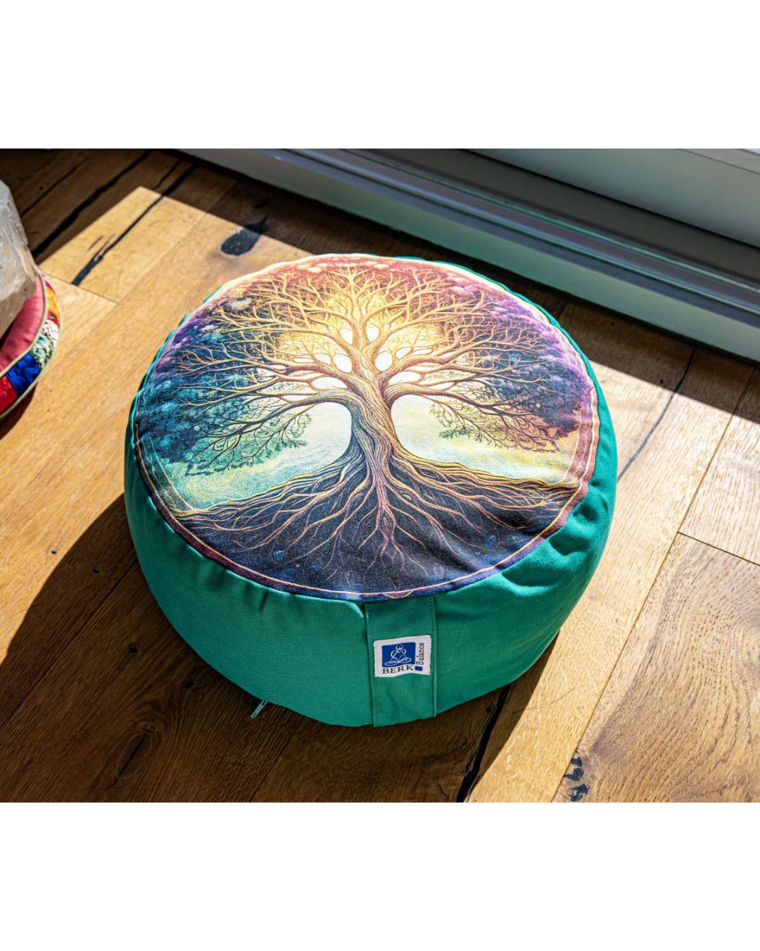 - Mystisches Meditationskissen Baum des Lebens - Ø36 cm, H 15 cm. 100% reißfeste Baumwolle, abnehmbarer Bezug mit Reißverschluss, bei 30°C waschbar, Buchweizenspelz-Füllung.