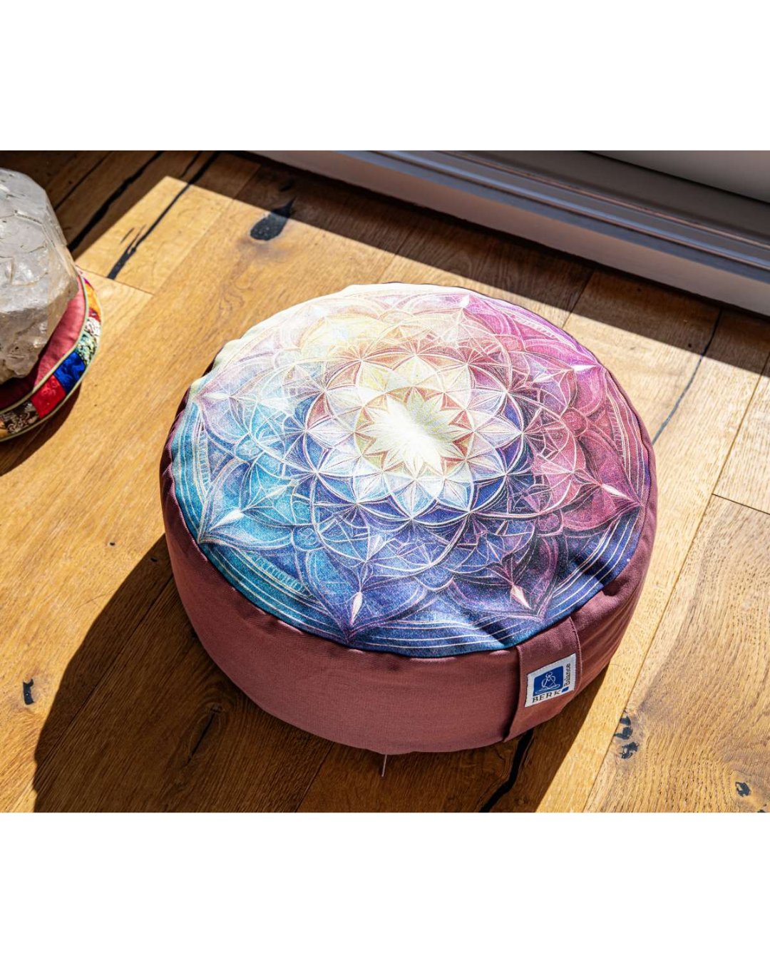 - Mystisches Mandala-Meditationskissen, Ø36×15 cm. Reißfester 100% Baumwollbezug mit Reißverschluss, abnehmbar & waschbar (30°C). Innenbezug Naturbaumwolle, Füllung Buchweizenspelz.