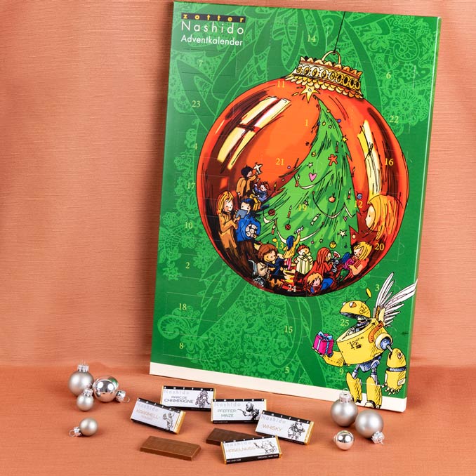 Die feinen Mini-Schokotafeln im Nashido Adventskalender werden in sorgfältiger Handarbeit hergestellt. Zotter steht für höchste Schokoladenkunst und verwendet nur die besten Zutaten aus kontrolliert biologischem Anbau und fairem Handel. Jede Schokotafel ist ein kleines Kunstwerk und verspricht höchsten Genuss.