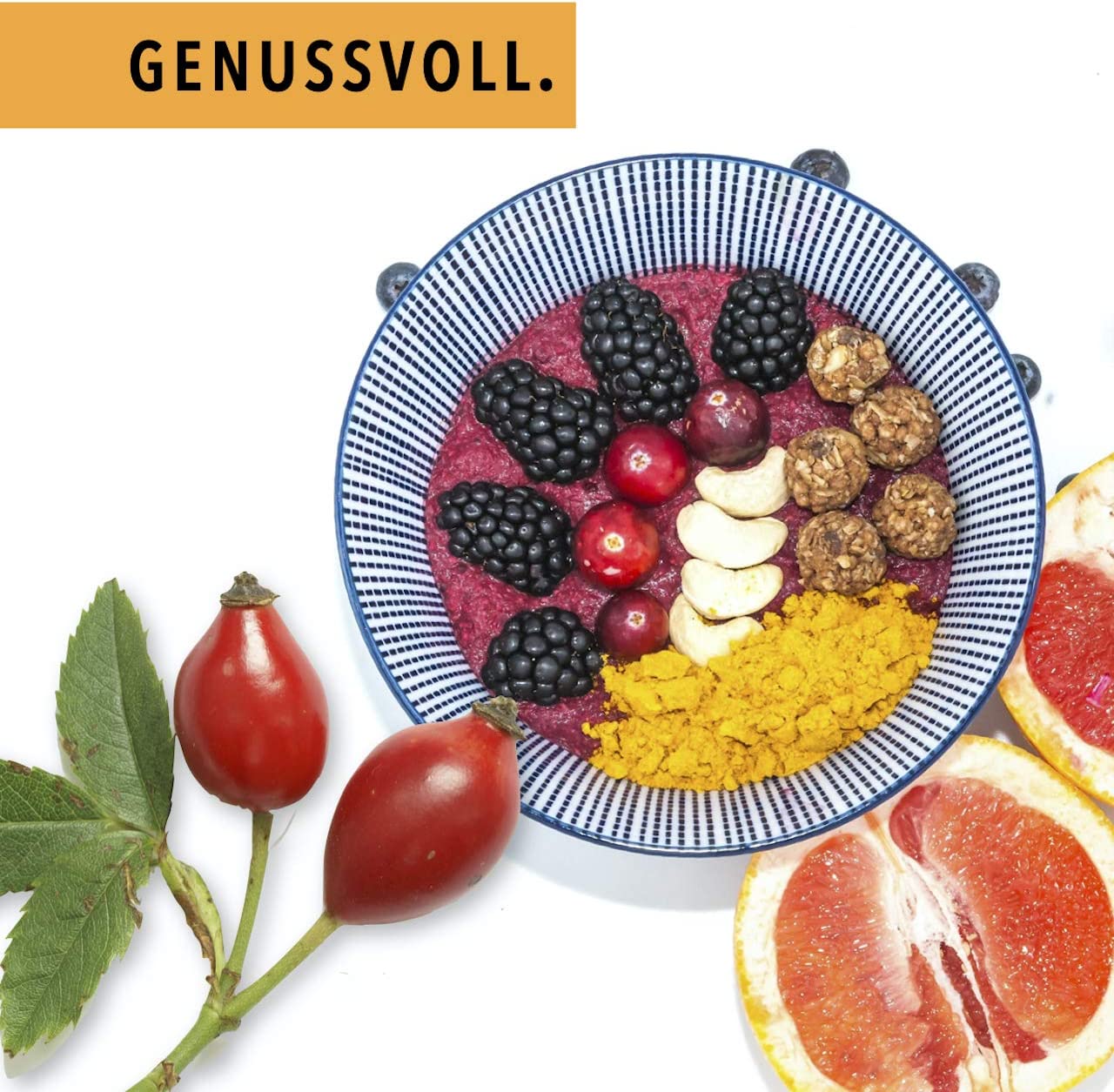 Täglich einen leicht gehäuften TL (à 8-10 g) in kühle Flüssigkeit wie Saft oder Smoothies oder in kühlen Joghurt oder Quark einzurühren. h:butte™ mag nicht in warmen Flüssigkeiten aufgelöst werden.