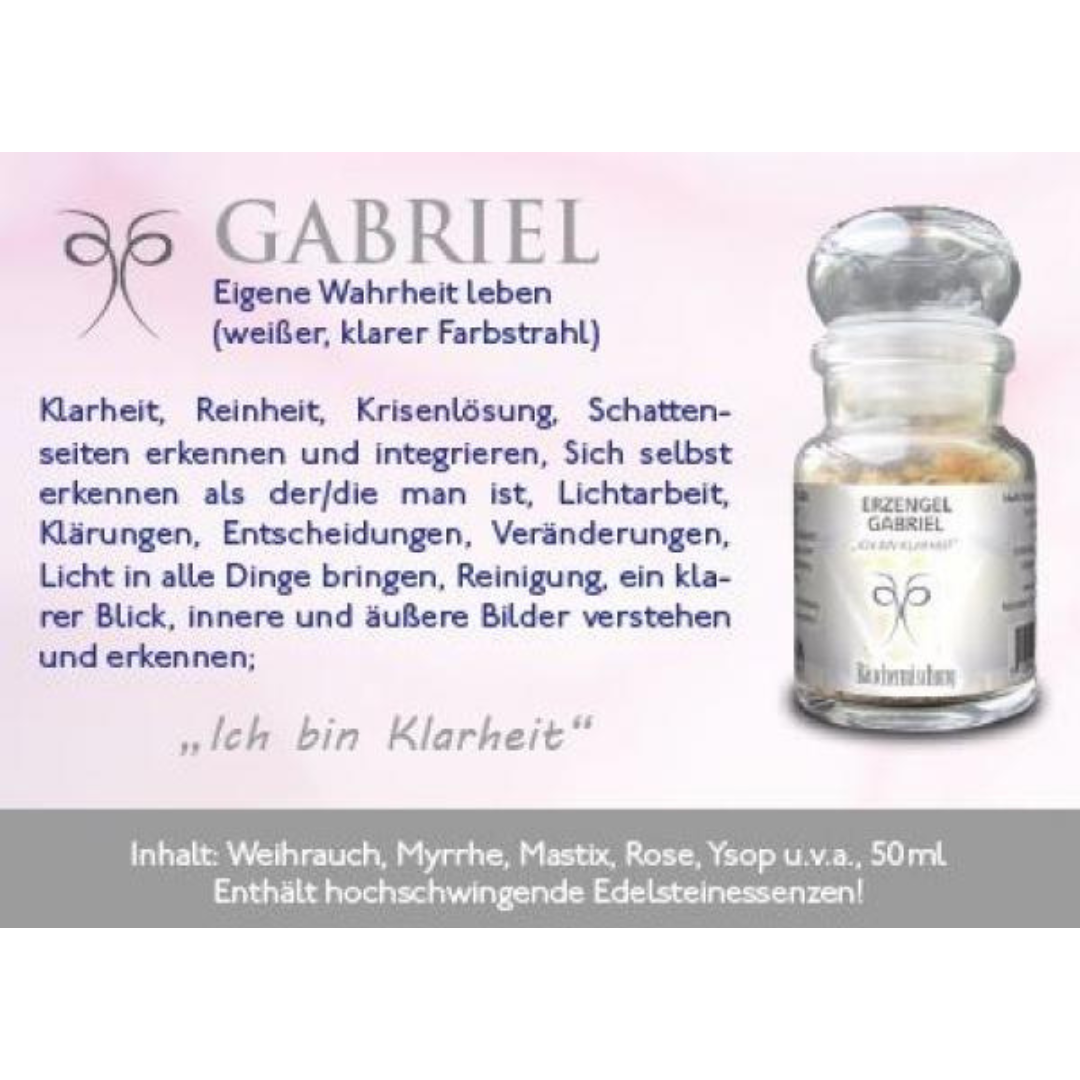Die Räuchermischung GABRIEL vereint edle Harze, Kräuter und Blüten zu einem Duft, der Klarheit, Reinheit und innere Orientierung schenkt. Der Duft eröffnet Räume für bewusste Entscheidungen, Veränderung und das Erkennen eigener Muster.