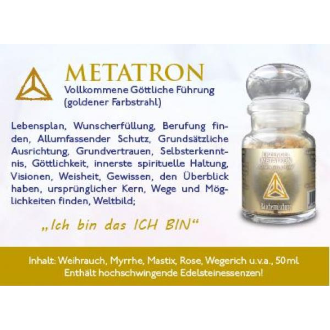 Die Räuchermischung METATRON steht für innere Klarheit und bewusste Ausrichtung. Ihre ausgewogene Komposition aus edlen Harzen und erlesenen Kräutern lädt dazu ein, in Kontakt mit der eigenen Mitte zu treten und den Blick auf das Wesentliche zu richten. Der Duft entfaltet sich sanft und zugleich tiefgründig – ein aromatisches Erlebnis, das Geist und Raum harmonisch durchdringt.