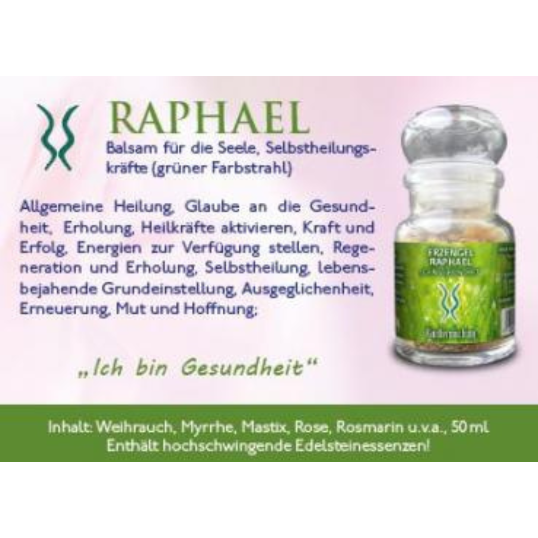Die hochschwingenden Edelsteinessenzen der Mischung unterstreichen die Wirkung der Inhaltsstoffe. Sie fördern ein Gefühl von Erneuerung, Mut und Ausgeglichenheit und machen RAPHAEL ideal für Meditation, energetische Rituale oder Momente der inneren Zentrierung.