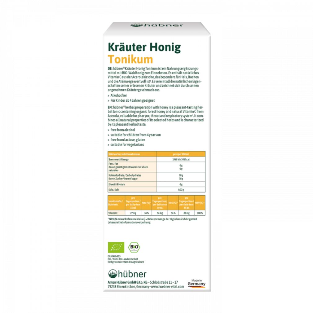 Hübner Bio Kräuter Honig Tonikum Produktdetaljer