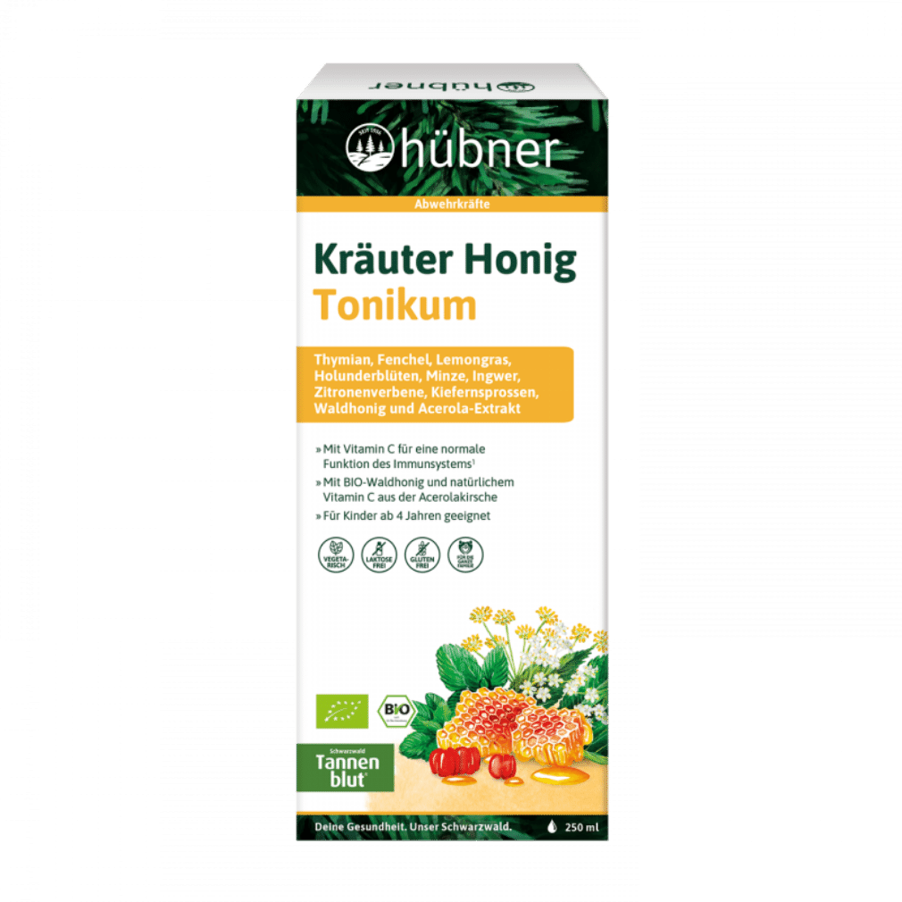 Seit 1922 überzeugt hübner® mit hochwertiger Produktqualität aus dem Schwarzwald. Das Kräuter Honig Tonikum vereint die Kraft der Natur mit moderner Wissenschaft, um dein Wohlbefinden zu unterstützen und deine Gesundheit zu fördern.