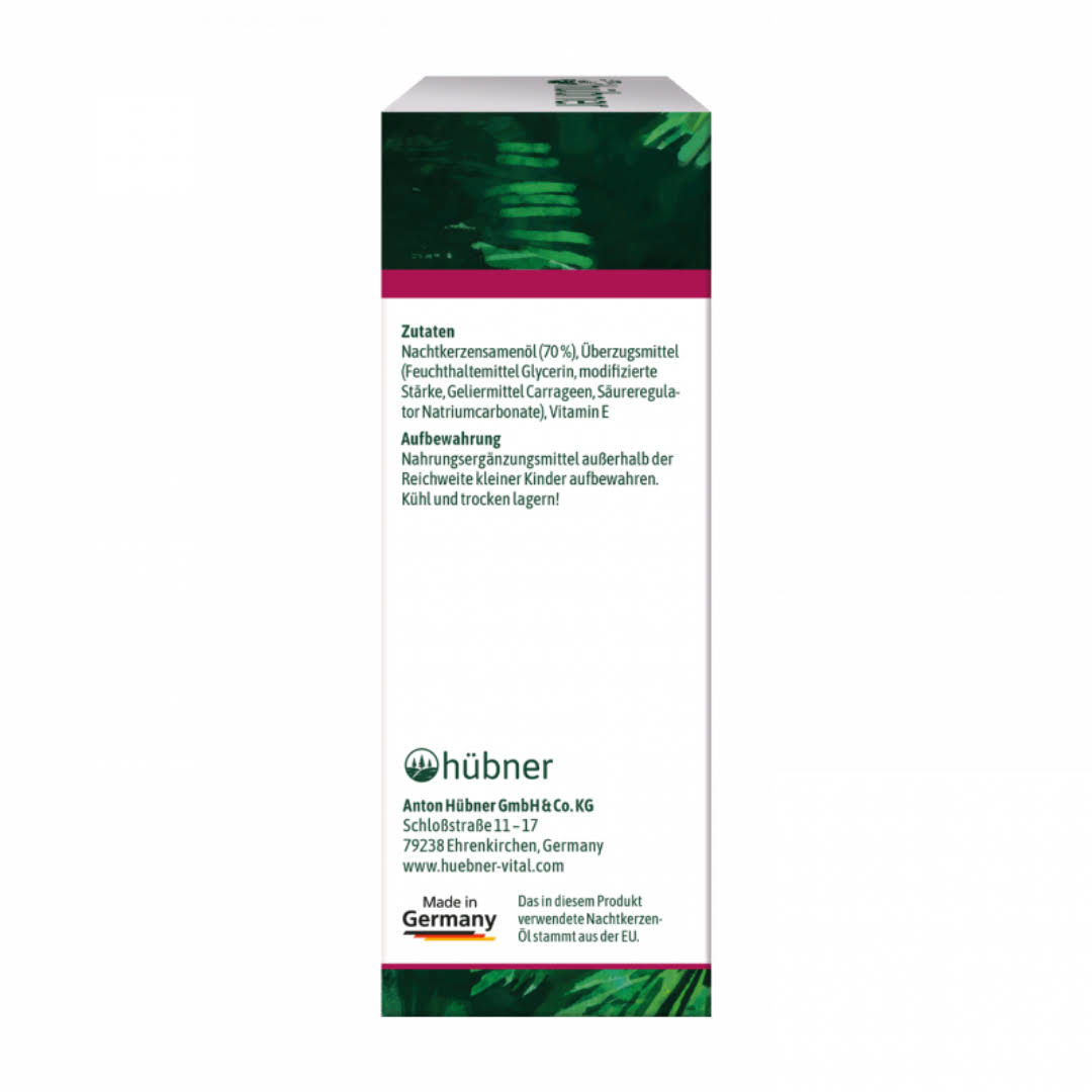Die Nachtkerzen-Öl Kapseln enthalten reines, kaltgepresstes Samen-Öl der Nachtkerze (Oenothera biennis). Dieses Öl ist besonders wertvoll wegen seiner essentiellen, mehrfach ungesättigten Omega-6-Fettsäuren, wie Linolsäure und Gamma-Linolensäure, die wichtige Funktionen im Körper erfüllen und zur Hautgesundheit beitragen.