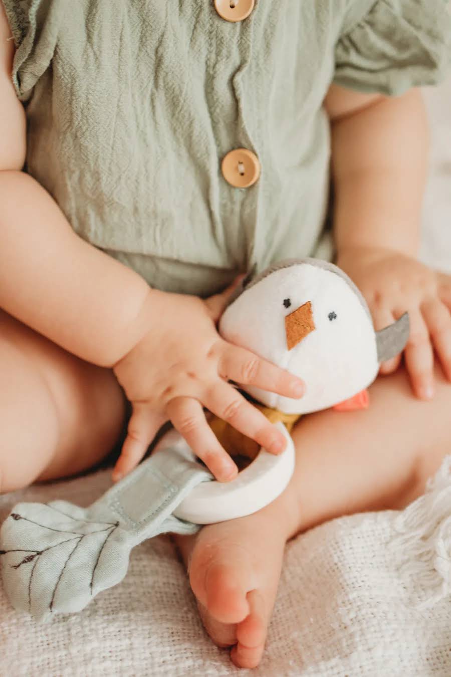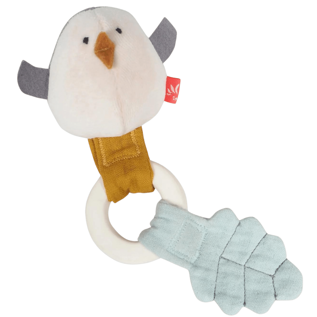 Der Beißring ist mit einem charmanten Waldvögelchen versehen, das aus 100% Bio-Baumwolle gefertigt ist. Beim Spielen mit diesem weichen Vogel wird nicht nur die Neugier geweckt, sondern auch die motorischen Fähigkeiten und die Hand-Augen-Koordination Ihres Babys geschult.