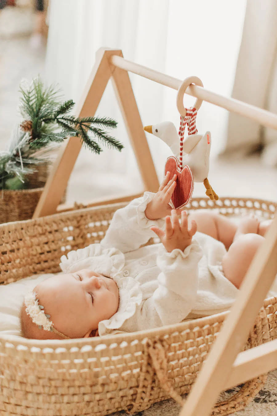 An diesem Beißring sind zwei charmante Stoff-Figuren befestigt, die das Interesse Ihres Babys wecken und halten. Die Gans erzeugt faszinierende Knistergeräusche und Rasselklänge, die die auditive Wahrnehmung Ihres Kindes stimulieren. Das Herz ist mit einem kleinen Spiegel versehen, der die Selbstwahrnehmung fördert und zum Entdecken einlädt. Diese abnehmbaren Figuren ermöglichen es Ihrem Kind, durch aktives Spielen seine Welt zu erkunden und zu verstehen.