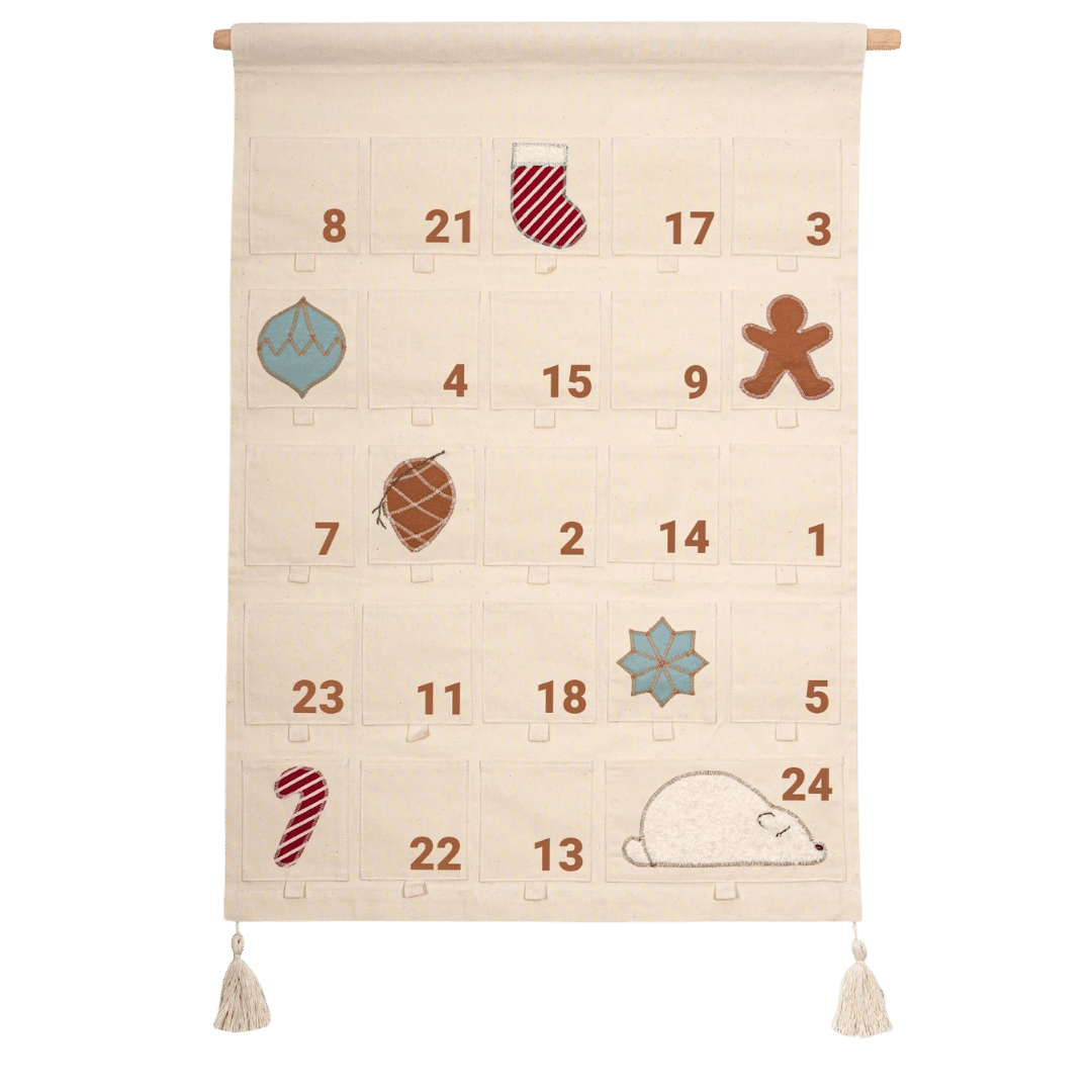 Der Countdown bis Weihnachten kann beginnen! Der Adventskalender Eisbär ist nicht nur praktisch, sondern auch ein echter Hingucker. Mit seinen naturbelassenen Farben und den weihnachtlich aufgestickten Motiven verbreitet er eine gemütliche, adventliche Atmosphäre in deinem Zuhause und lässt die Vorfreude auf das Fest der Liebe noch intensiver spüren.