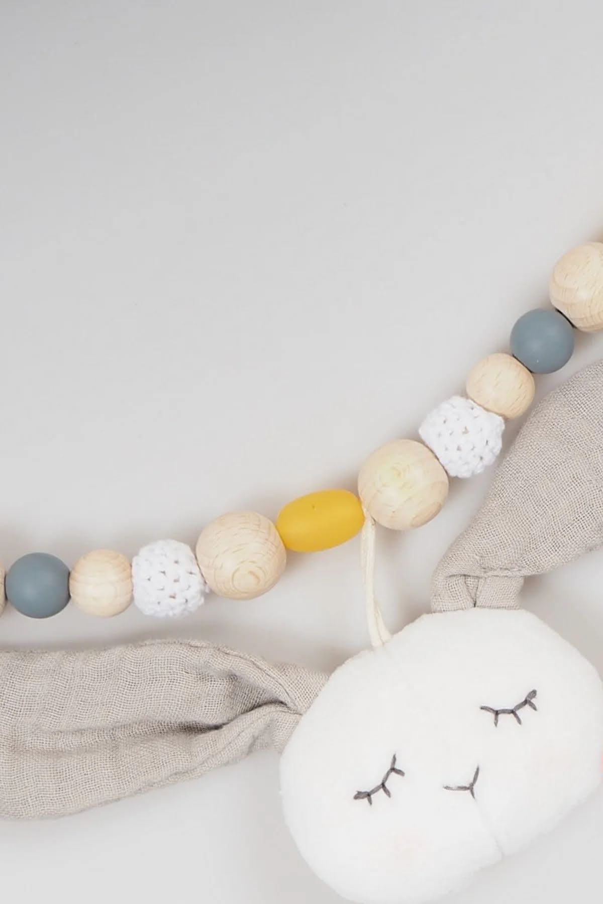 Eine Kinderwagenkette ist für Kikadu ebenso unverzichtbar wie eine Spieluhr im Kinderbett oder ein Mobile über dem Wickeltisch. Besonders unterwegs im Kinderwagen oder im Auto am Rücken des Kindersitzes angebracht, bietet die Kette ideale Unterhaltung. Sie fördert spielerisch die Sinne deines Babys und wirkt beruhigend, um Ängsten vorzubeugen.