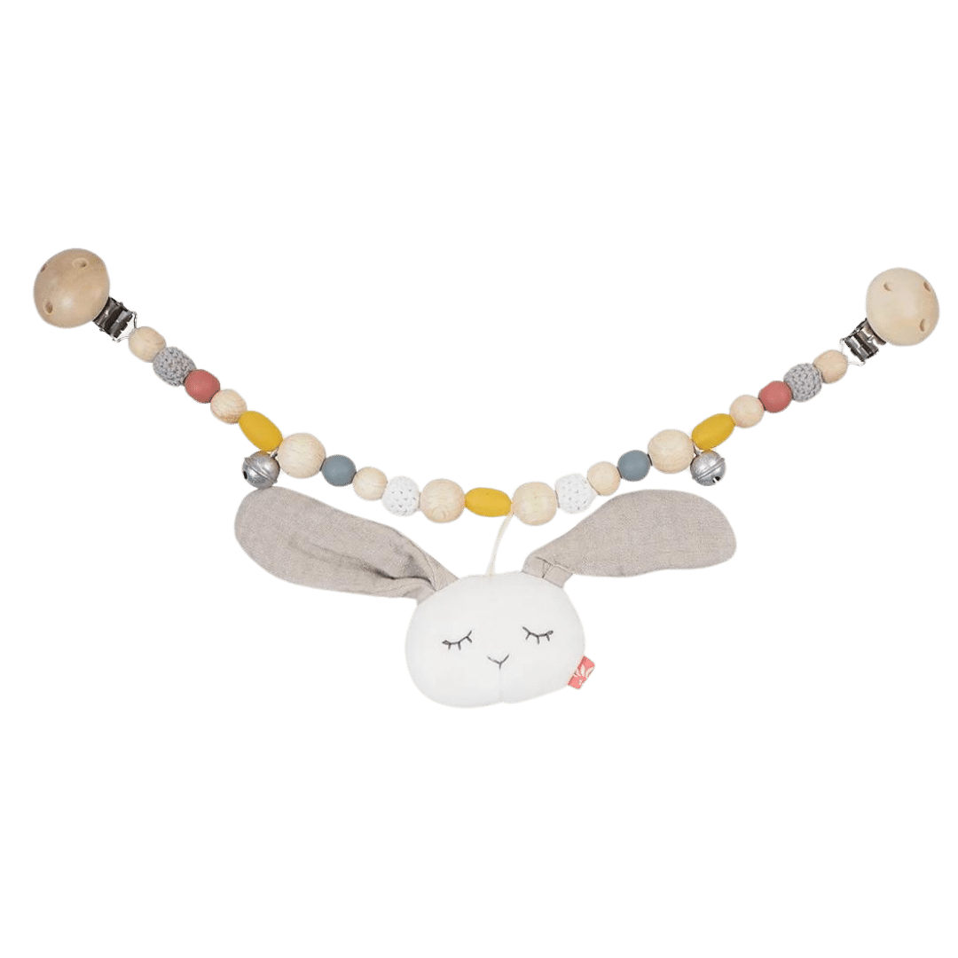 Entdecke die zuckersüße Kinderwagenkette von Kikadu, die dein Baby jederzeit bestens unterhält. Das liebevoll gestaltete Häschen mit seinem Glöckchen lädt zum Greifen und Erkunden ein.