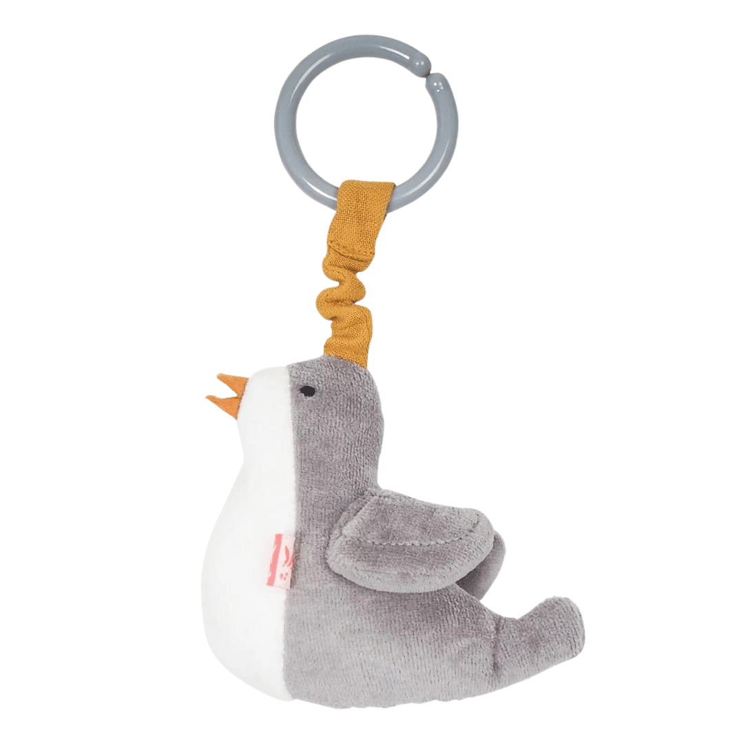Das Mini-Mobile lässt sich durch den praktischen Ring an verschiedenen Orten befestigen. Egal ob am Kinderwagen, Kindersitz, der Babyschale oder am Kinderbettchen – überall bereitet es Freude und fördert die sinnliche Wahrnehmung deines Babys. Das mobile Vögelchen sorgt mit seinen Pfeifgeräuschen für zusätzliche Unterhaltung und regt das Hörvermögen an.