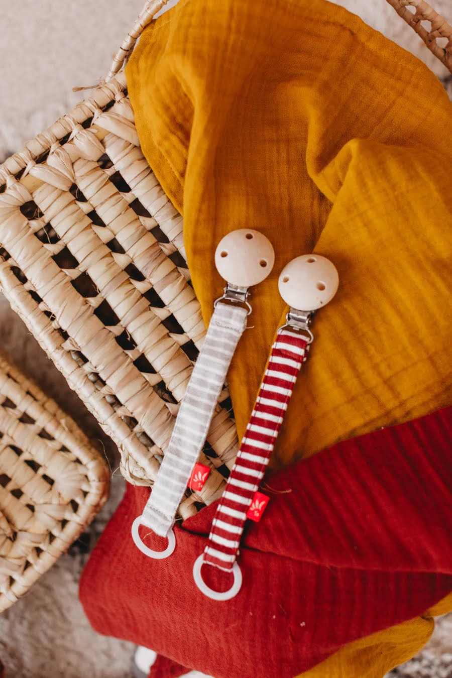 Schluss mit Schnullerchaos: Praktische Schnullerketten von kikadu aus Musselin