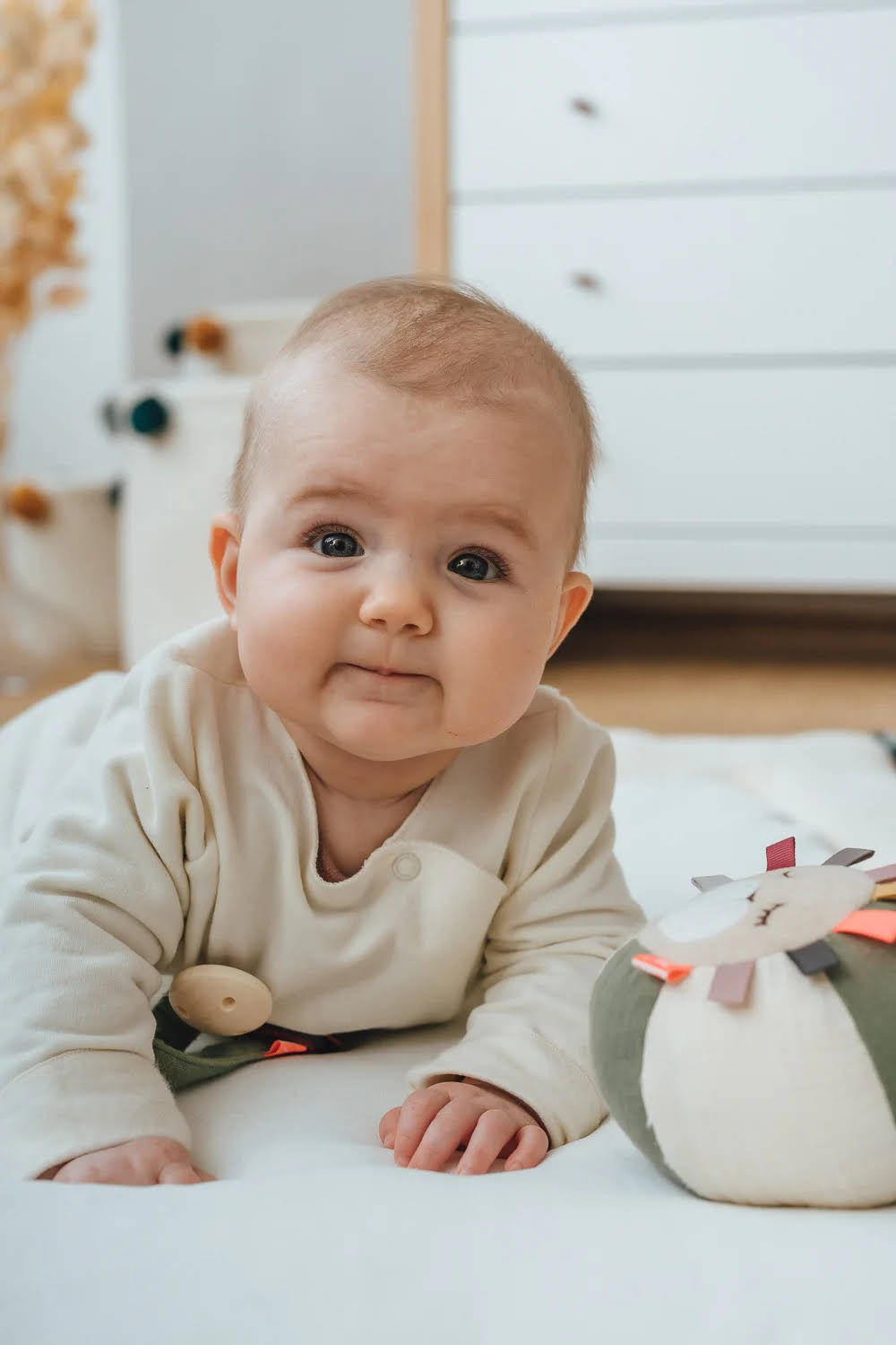Empfohlen ab dem 3. Monat, ist dieser Rasselball das ideale Spielzeug, um frühzeitig mit der Förderung Ihres Babys zu beginnen. Die Größe und das Gewicht des Balls sind optimal für kleine Hände gestaltet, sodass Ihr Baby ihn leicht greifen und erkunden kann.