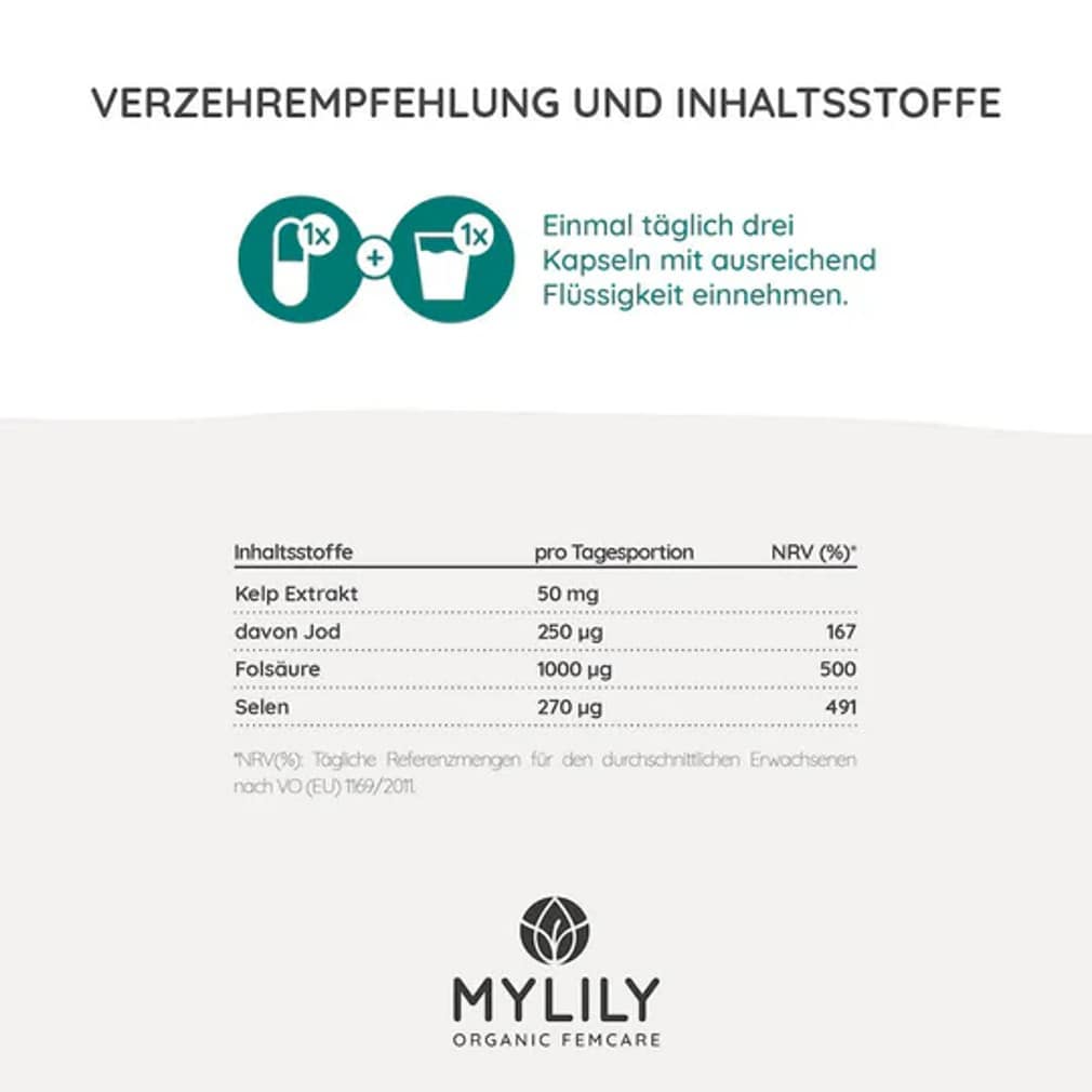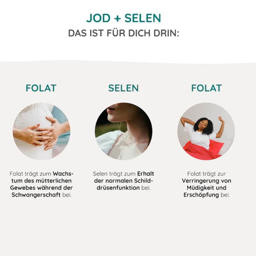 - aus Kelp gewonnenem Jod, Selen & Folsäure