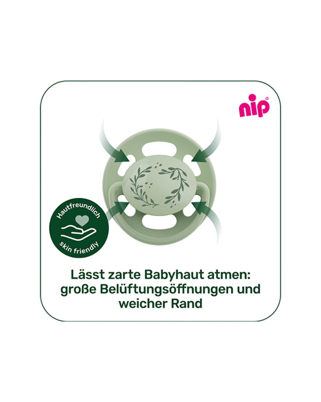 Hergestellt aus Naturkautschuklatex, welcher im Einzelfall allergische Reaktionen hervorrufen kann. Schnuller entspricht der Norm EN 1400 und ist von unabhängigen Instituten geprüft. Bei Beanstandungen bitte Schnuller mit Packung einsenden.