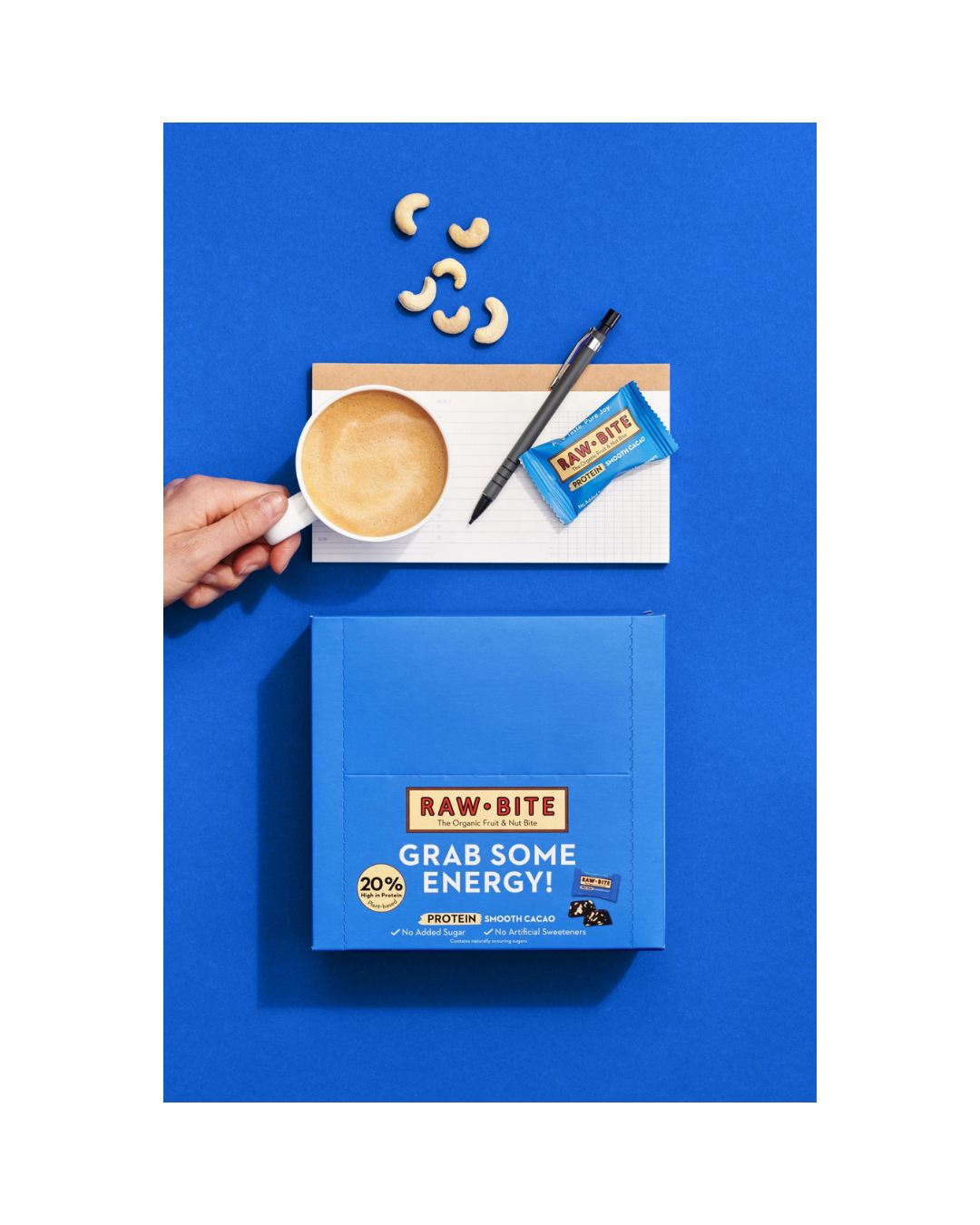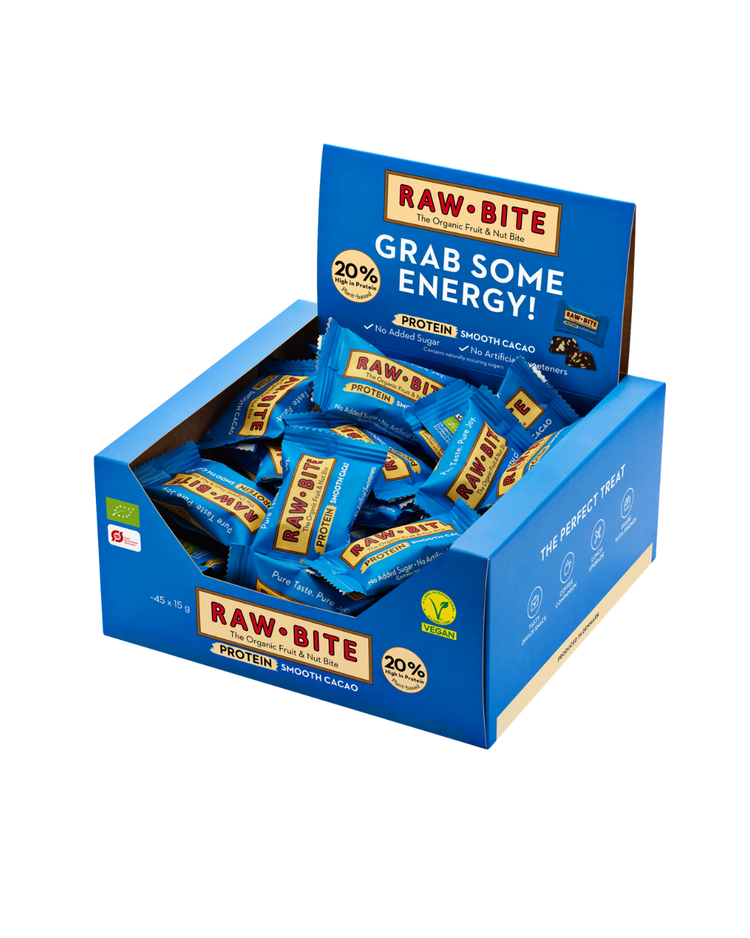 RAW BITE Bio Protein Smooth Cacao Office Box (45 x 15g Riegel) Produktdetaljer