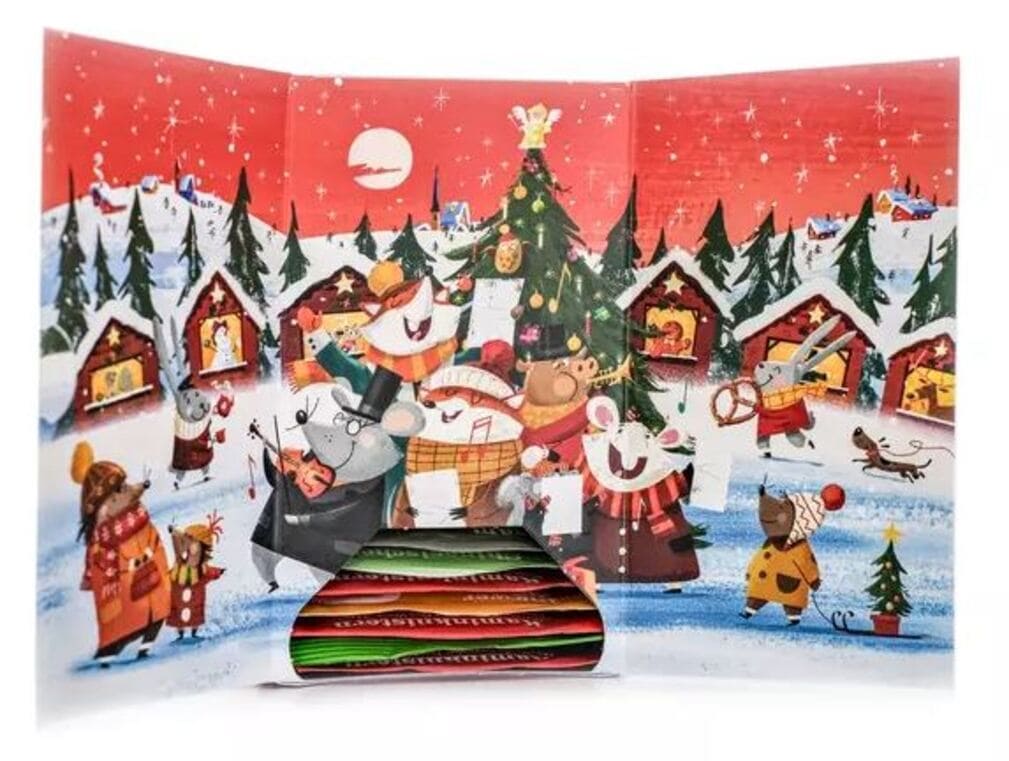Erst habe ich gedacht, oh, der ist aber klein, der Adventskalender. Man kann die Seitenflügel aufklappen unsd schon wirkt es größer. Die Illustrationen sind sehr gelungen, sehr schön. Und, der Inhalt ist für Teetrinker sehr angenehm wohlschmeckend. In Bio-Qualität. Tolle Alternative zu Schokokalendern.