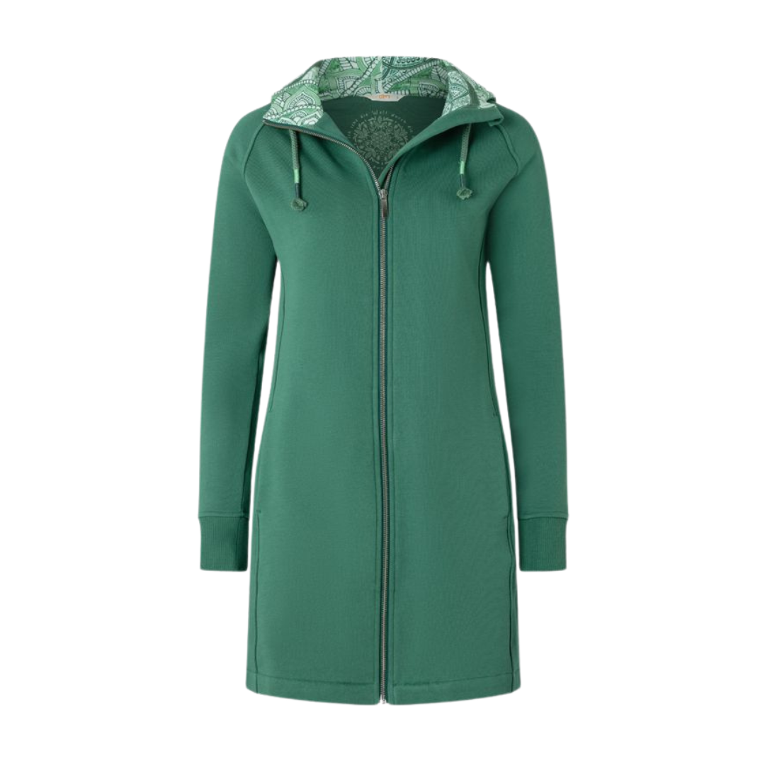 Die Longjacke Bala "Karuna" verbindet durchdachtes Design mit nachhaltiger Produktion. In sattem Waldgrün gehalten, passt sie perfekt zur naturnahen Garderobe und bietet dank ihres bequemen Schnitts hohen Tragekomfort. Ein stilvoller Begleiter für Übergangszeiten, der Funktionalität und Eleganz vereint.
