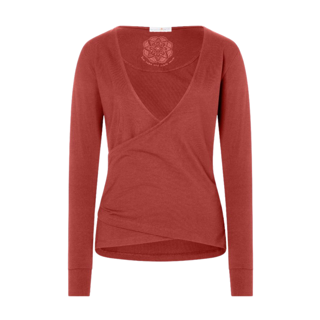 Ob als stilvolles Oberteil für die Yoga-Praxis oder als elegantes Basic für den Alltag – das Wickeltop Abala bietet vielseitige Tragemöglichkeiten. Besonders harmonisch wirkt es in Kombination mit unseren Yoga-Leggings Mangala in holi oder erdrot.